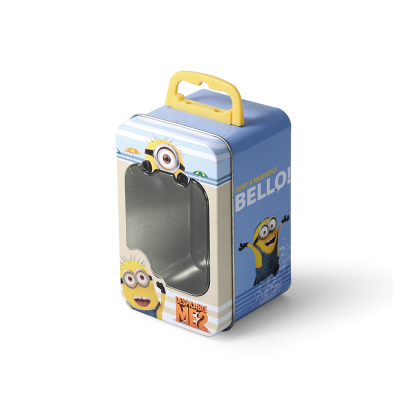 2. Это небольшой прямоугольная жестяная коробка с окошком и ручкой подходит для упаковки детских часов.
